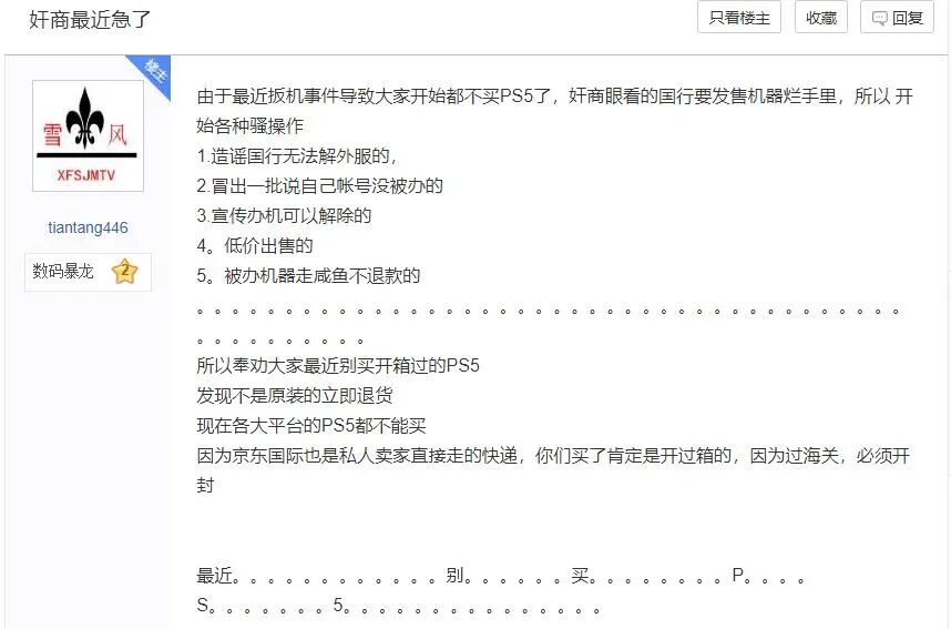 有网友遍数奸商的种种罪过,同时呼吁玩家不要买黄牛手里的水货机。其中一个理由,就是国行PS5要来了。