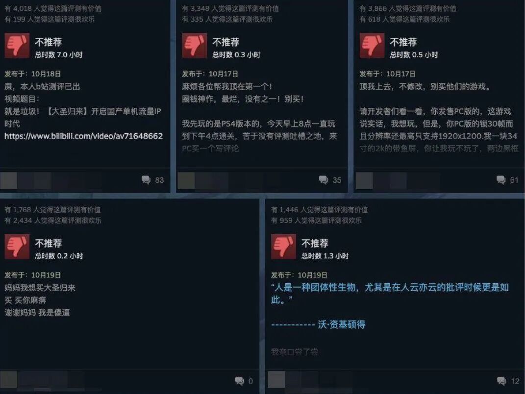 即便在登录Steam后,《西游记之大圣归来》依然差评如潮。