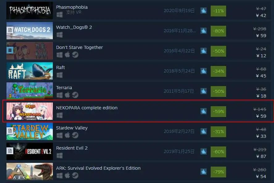 几乎每一次的打折活动,这个系列的作品也都会参与,且每次都能冲进国区销量榜的前列。良心的游戏内容搭配较为亲民的售价,想必没有一位绅士能拒绝这样的诱惑。