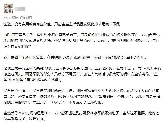 还有网友分析,厂长的出现本质上就是为了提振LPL的收视率,就像NBA乔丹年近40的时候还坚持复出一样,他的存在本身就是许多观众看比赛的理由。