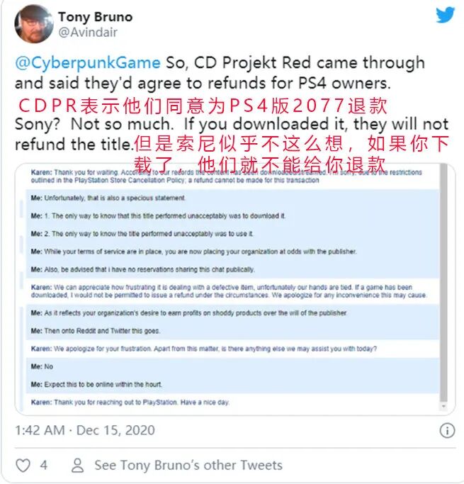 索尼和微软拒绝CDPR的退款声明,除了遵守合约外,恐怕还有向CDPR施压的意图。