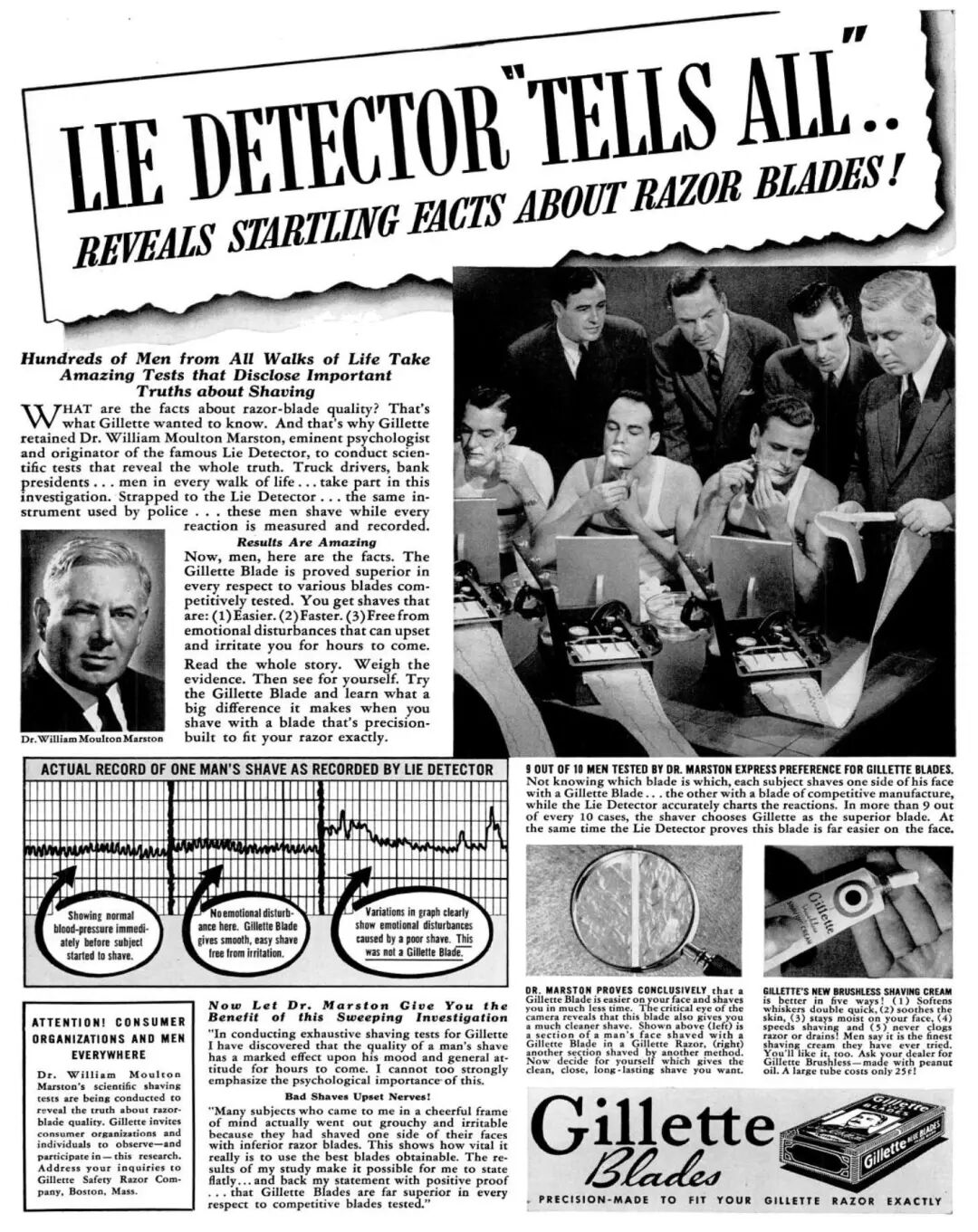 马斯顿使用测谎仪为吉列剃须刀所打的广告