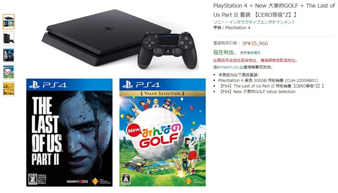 更有趣的是,在我将“TLOU2”与“GOLF”同时输入搜索引擎的时候,出现的第一条信息链接,居然直接指向了亚马逊日本中,上架的一款PS4与主机游戏的捆绑销售套装。