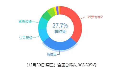 12月31日,《送你一朵小红花》和《温暖的抱抱》正式上映,首日票房双双破亿,《拆弹专家2》和《晴雅集》掉到了第三、第四的位置。