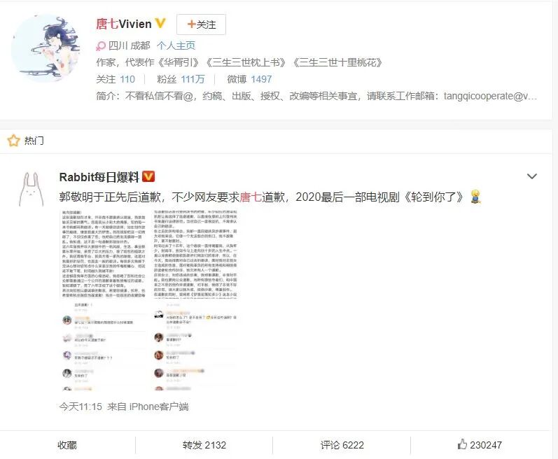 而现在,另一位涉嫌抄袭的唐七,被网友们骂上了热搜。