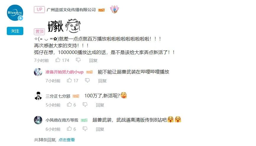 同时也有网友表示,能不能让《超兽武装》等作品在B站播放。目前《英雄觉醒》预告片的播放量已经突破100万,不知道官方所指的“新活”,会不会是在B站上架旗下动画的消息。