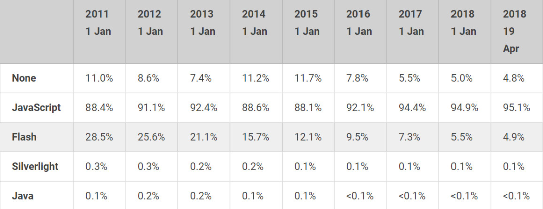 而对于整个互联网大环境来说,淘汰Flash也早已是大势所趋。截至2018年,整个互联网上仍需使用Flash插件进行浏览的内容,占有率仅剩4%。而与之对应的,母公司Adobe收到的关于Flash的用户投诉,则是在与日俱增,这些投诉大多与Flash插件存在的层出不穷的广告、网络安全漏洞,以及程序运行所造成的浏览器崩溃有关。对于如今的Flash来说,用户所能列出的缺点要远多于优点。