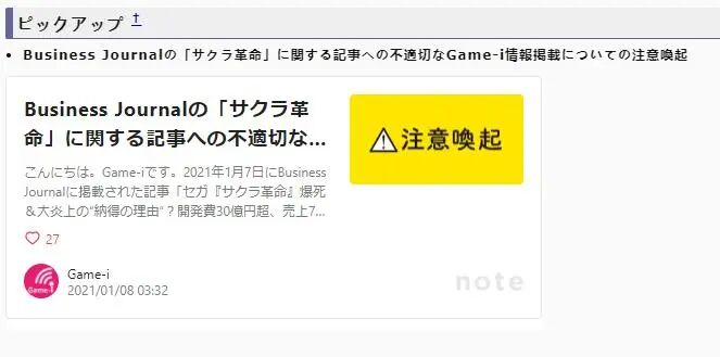 话题回到“樱花革命”的炎上问题本身,就算没有了“莫名背锅”的马场英雄,那篇发表在日本经济新闻类网站,“Business Journal”上的报道,所造成的影响,依然笼罩在世嘉和“DW”身上。