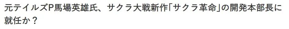 “原传说系列制作人马场英雄,就任‘樱花革命’开发本部长?”