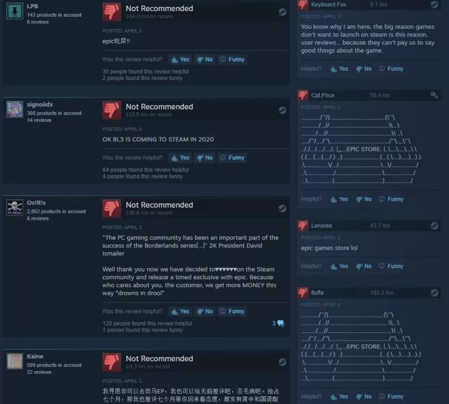 之后,随着《无主之地3》《控制》等诸多新游大作,宣布将在Epic游戏平台上限时独占后,网络上对于Epic游戏平台的斥责声越来越大,甚至开始牵连到相应游戏的开发者。在那个最疯狂的时间,攻击Epic平台和那些Epic独占的游戏简直成了“政治正确”。与Epic合作的厂商会被冠上各种骂名,而拒绝与Epic合作的厂商则会被称赞为“高风亮节”。