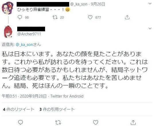事已至此,双方已经没有退后的余地,作为hololive中国官方代表的B站字幕组,纷纷解散表明立场,愤怒的中国网友们冲到外网,和多国网友打成一团,更有愤怒的网友,发出了针对桐生可可“中之人”的杀人预告(不过因为其日语表述过于怪异,无法排除反串黑的嫌疑)。