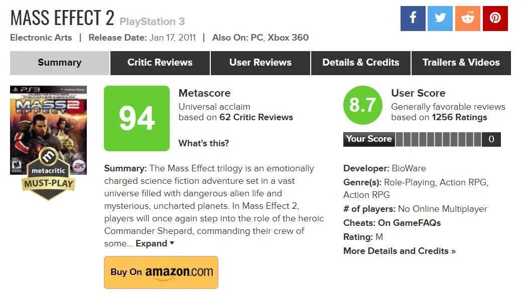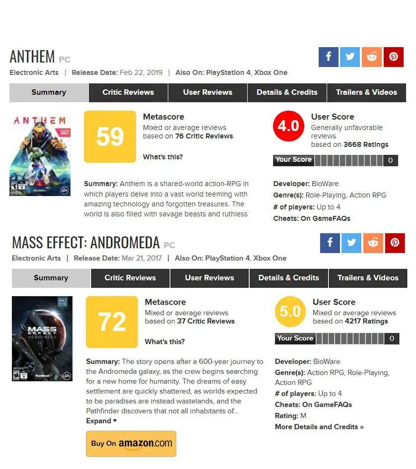 顺带一提,在正式发售前,BioWare还曾经邀请外部顾问为游戏做模拟评测,当时本作的估分接近80。但实际成品的评分,则创下了BioWare历史上开发游戏的最低分。