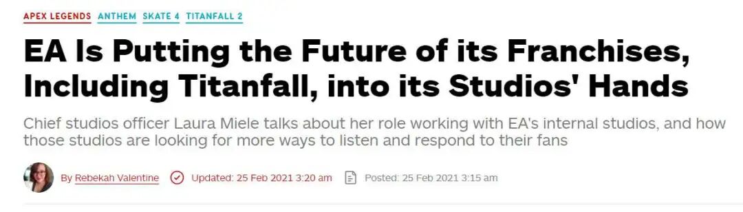 因为《圣歌》此次的更新取消事件,EA高管,首席工作室官 Laura Miele在IGN发布了一篇稿件,讲述了EA对于工作室发展的未来愿景。