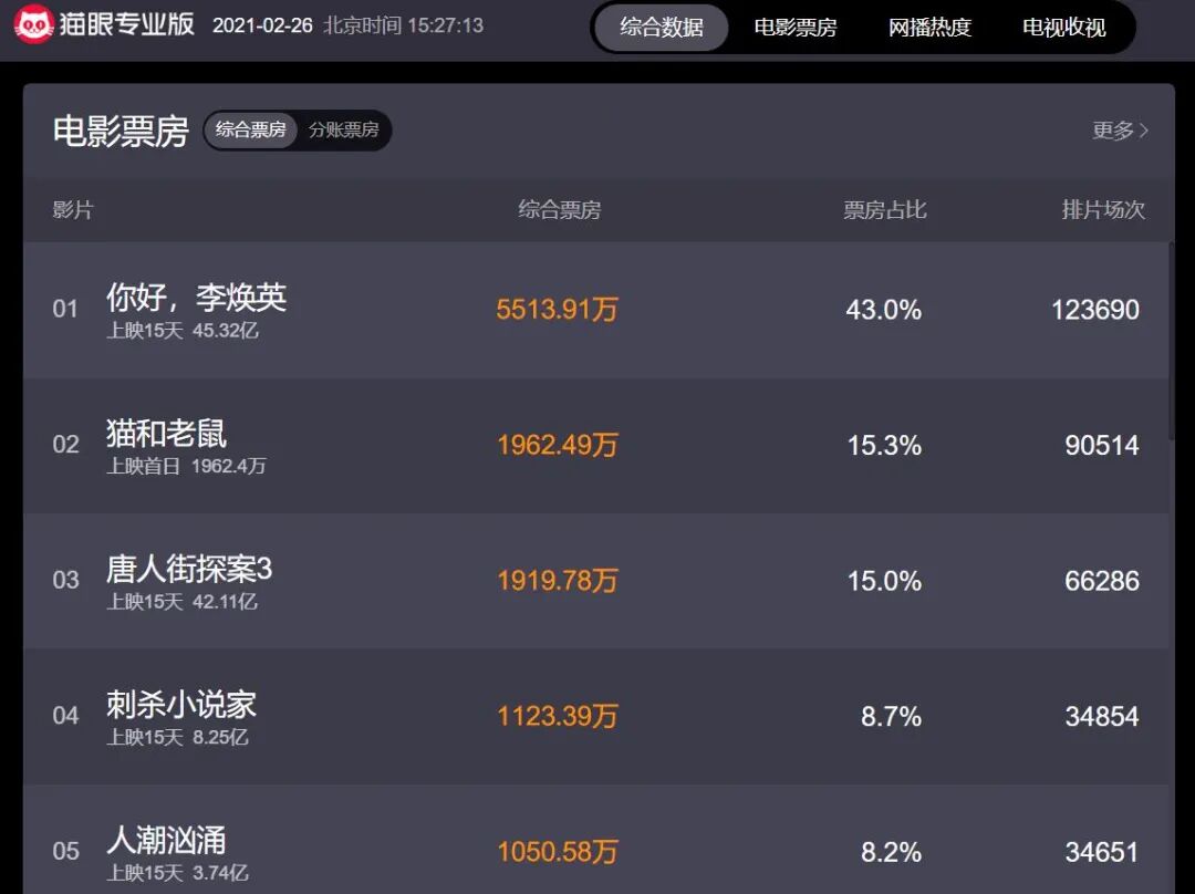 图源:猫眼专业版
