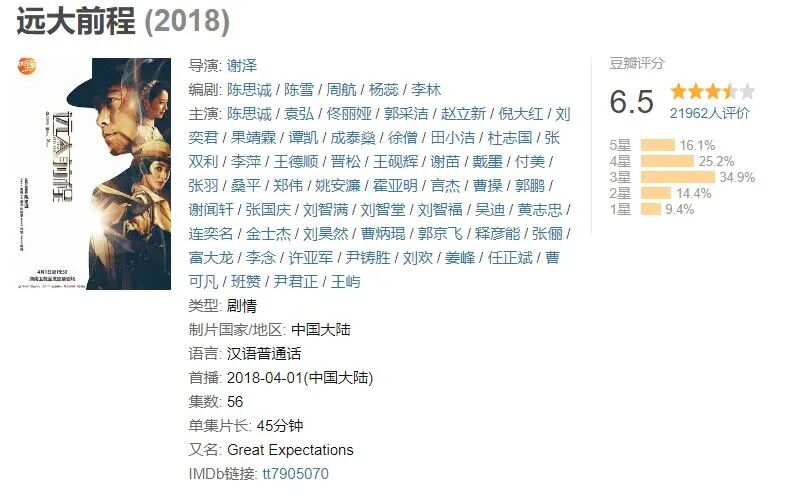 直到2018年,再次由他和佟丽娅主演的电视剧《远大前程》开播。这部集合了倪大红、刘奕君、富大龙等众多实力派、制作水准一流的年度大剧,被陈思诚的油腻硬生生拉低了评分。