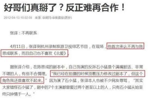 然而,担任男一号的陈思诚为了追求佟丽娅,对他和佟丽娅的戏份存了私心,张译、李晨的故事线相形见绌。这部剧之后,陈思诚和张译、李晨鲜有往来,双方对此闭口不谈。