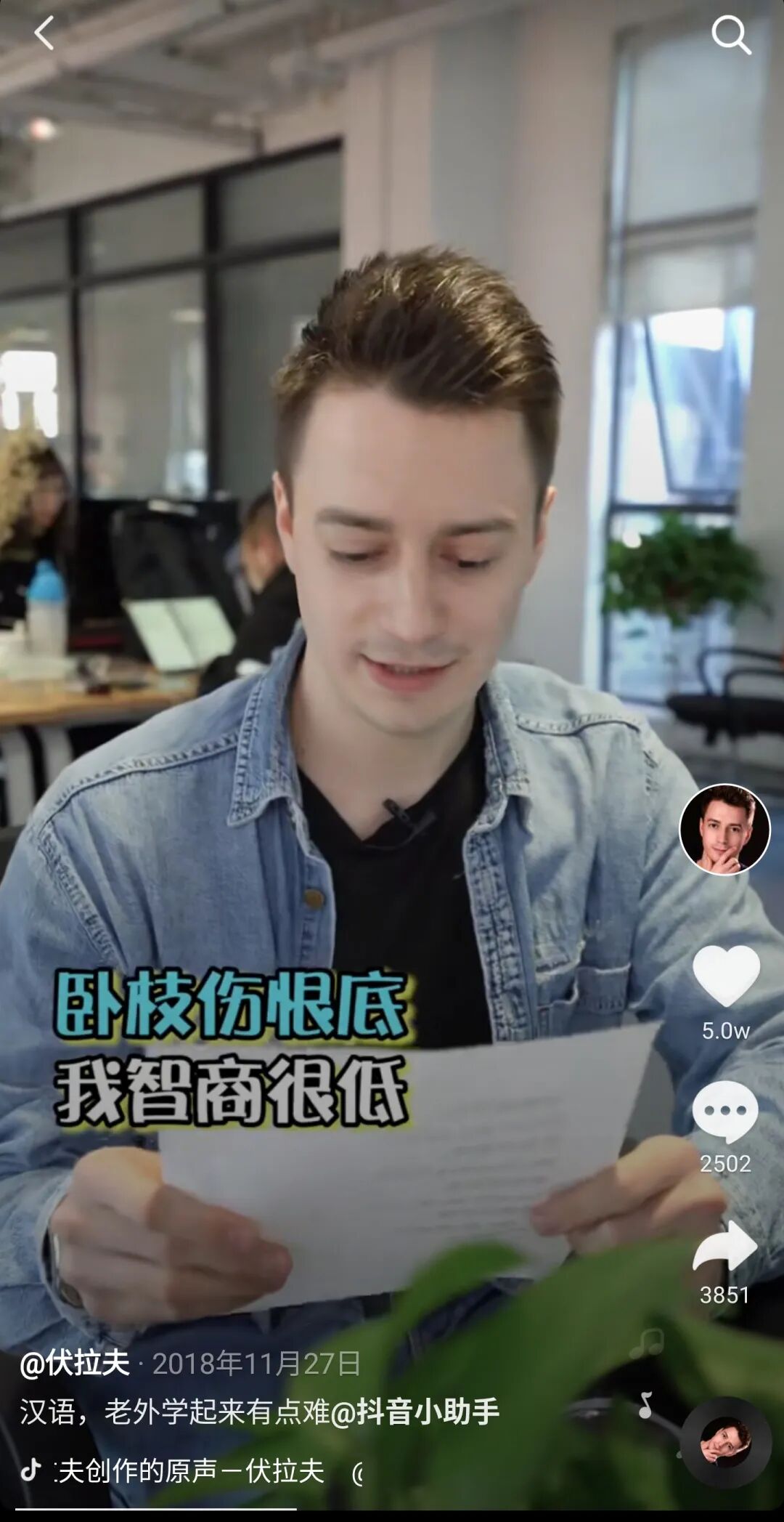 曾几何时,伏拉夫只是一个平平无奇的短视频制作者,在抖音上更新小剧场式的作品,没有夸张的表情,没有惊人的台词。安分守己并没有给伏拉夫带来流量,在众多同类创作者中,他一直默默无闻。