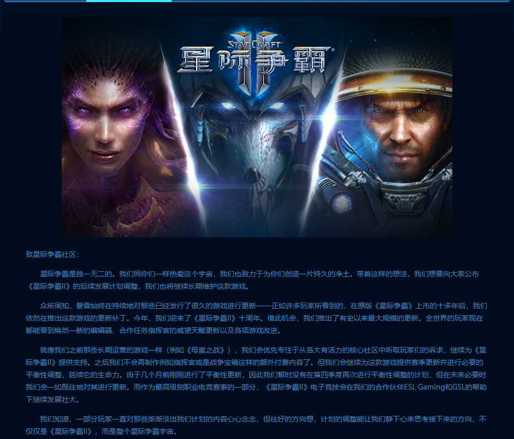 直到2020年10月16日,暴雪发布了一份公告:停止制作《星际争霸2》的付费内容。这条公告,无疑是宣布了《星际争霸2》的“安乐死”。
