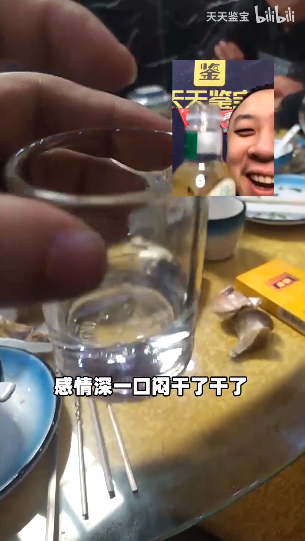 偶尔也有另有所图的宝友出现在直播间,他们可能并不在意宝物的真伪,开个直播就是为了亲近一下偶像。比如这位宝友,在鉴定完宝物后,二话不说就和鉴宝老师隔着屏幕对饮起来。