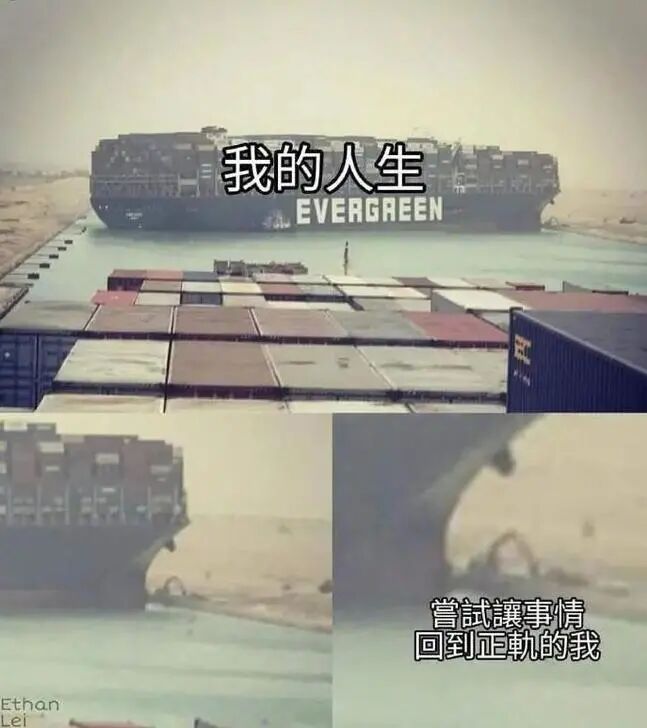 “长赐号”的名字看着是个善茬,颇有点感谢天感谢地的意思,听着像是星光大道嘉宾的获奖感言。可当这艘长约400米的巨轮斜斜地倚在宽约300米的运河河道上,这条亚、欧、非三洲大陆的重要交通枢纽,正像打工人的周末一样,正无比真实地“瘫痪”着。