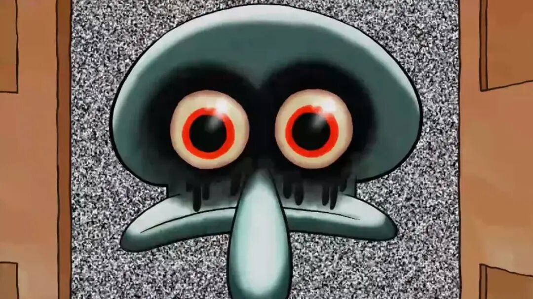 这个场景明显来源于《海绵宝宝》的都市传说——“章鱼哥自杀”。