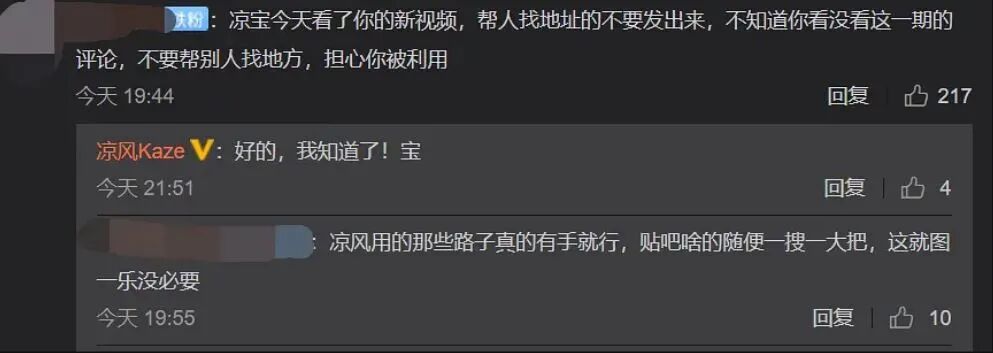 为了尽快降低这段视频造成的不良影响,热心的网友们不断留言陈述问题的严重性。有的人直接去凉风Kaze微博留言,建议凉风Kaze删掉视频,不管是为了保护他人隐私,还是避免给自己惹麻烦。然而,看到了大家建议的凉风Kaze,只是不痛不痒地回复“知道了”,并没有第一时间将视频删除。