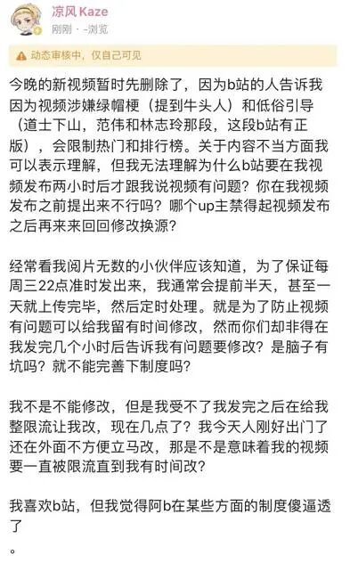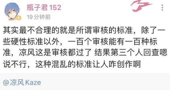 对审核标准不满的大UP不止一位,瓶子君152直言,一百个审核能有一百个标准,这已经影响到了内容创作。