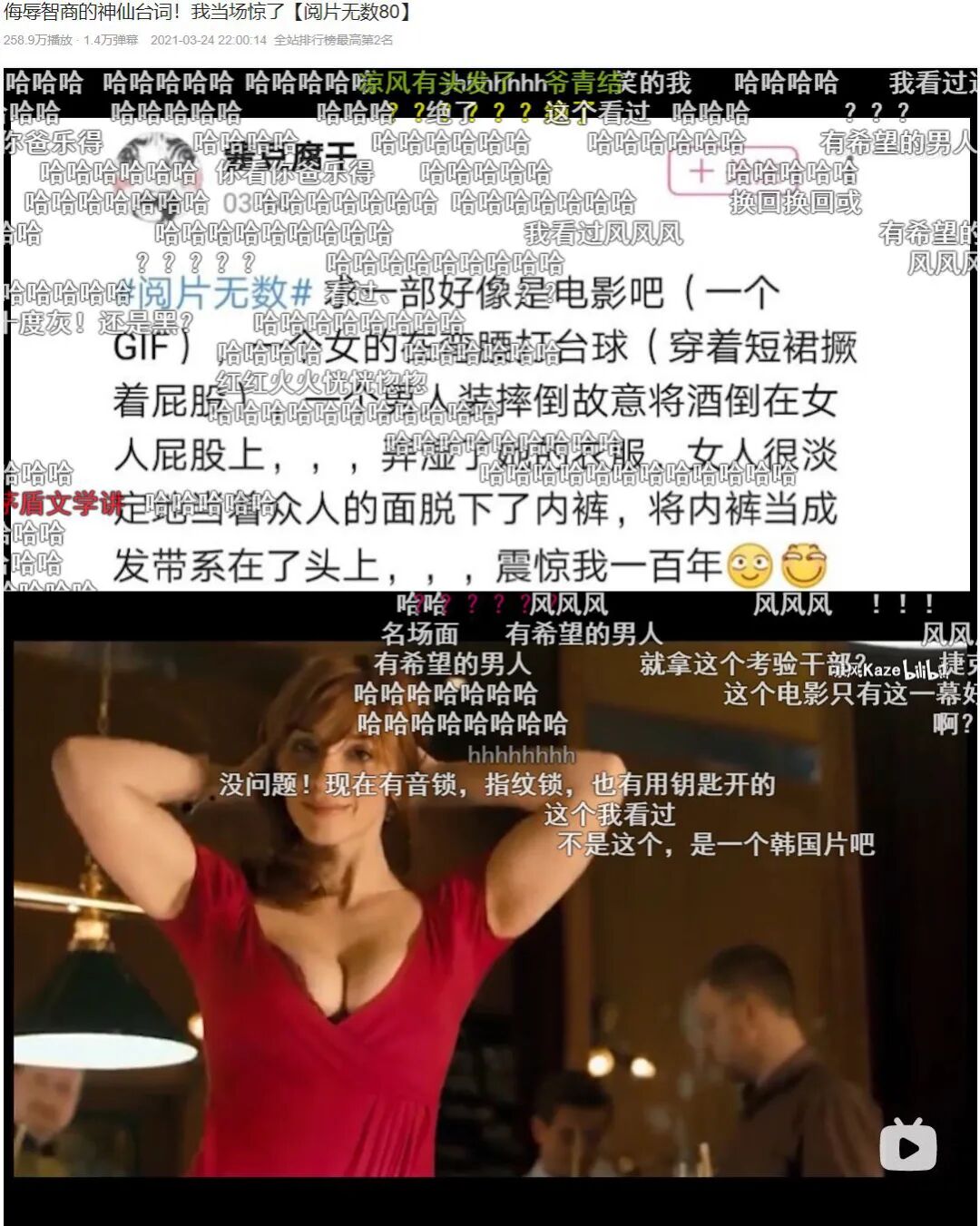同样令人没想到的是,身为百大UP主的凉风Kaze,也曾遭遇过审核标准的困扰。第56期“阅片无数”通过审核2小时后,B站通知凉风Kaze该视频因涉及NTR、低俗等内容被限流。凉风Kaze回应此事称,视频提前一天上传,就是为了防止不过审。但过审后又被限流,连修改的空间都没有。至于低俗引导问题,视频中出现的《道士下山》,是B站正版引进的电影。时至今日,这部电影依然可以在B站观看。