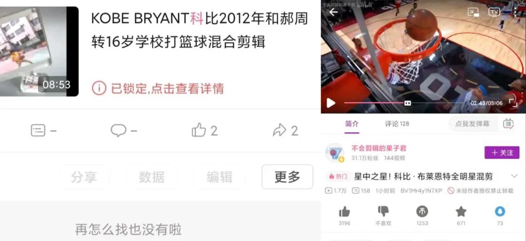 2月15日,UP主郝迅达公开爆料,投稿的科比打篮球与自己在学校打篮球的混剪视频,因为NBA版权问题被下架。但是隔天另一名UP主发布的科比混剪视频,却丝毫没有受到影响,甚至被推荐到了他的首页。在称赞B站大数据算法的同时,一个问题变得尤为突出:B站的审核标准,以及否区别对待UP主的现象,正在越发明显。