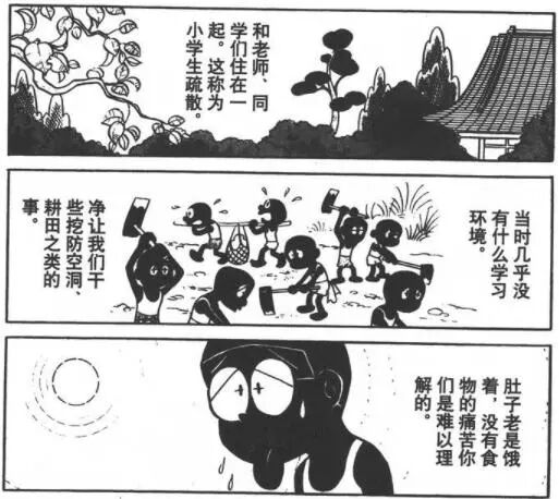 在上世纪战后反思阶,段进行“反战”主题创作的日本漫画家,并不只有《哆啦A梦》的作者藤子·F·不二雄老师。在《闪耀吧!大东亚共荣圈》中以极尽讽刺和夸张手法,描绘军国主义残忍的驾笼真太郎老师;在《赤足阿元》中正视历史,痛诉日军侵华残暴的中泽启治老师,都表现出了不分国界,“反战争”而非“反战败”的思想。