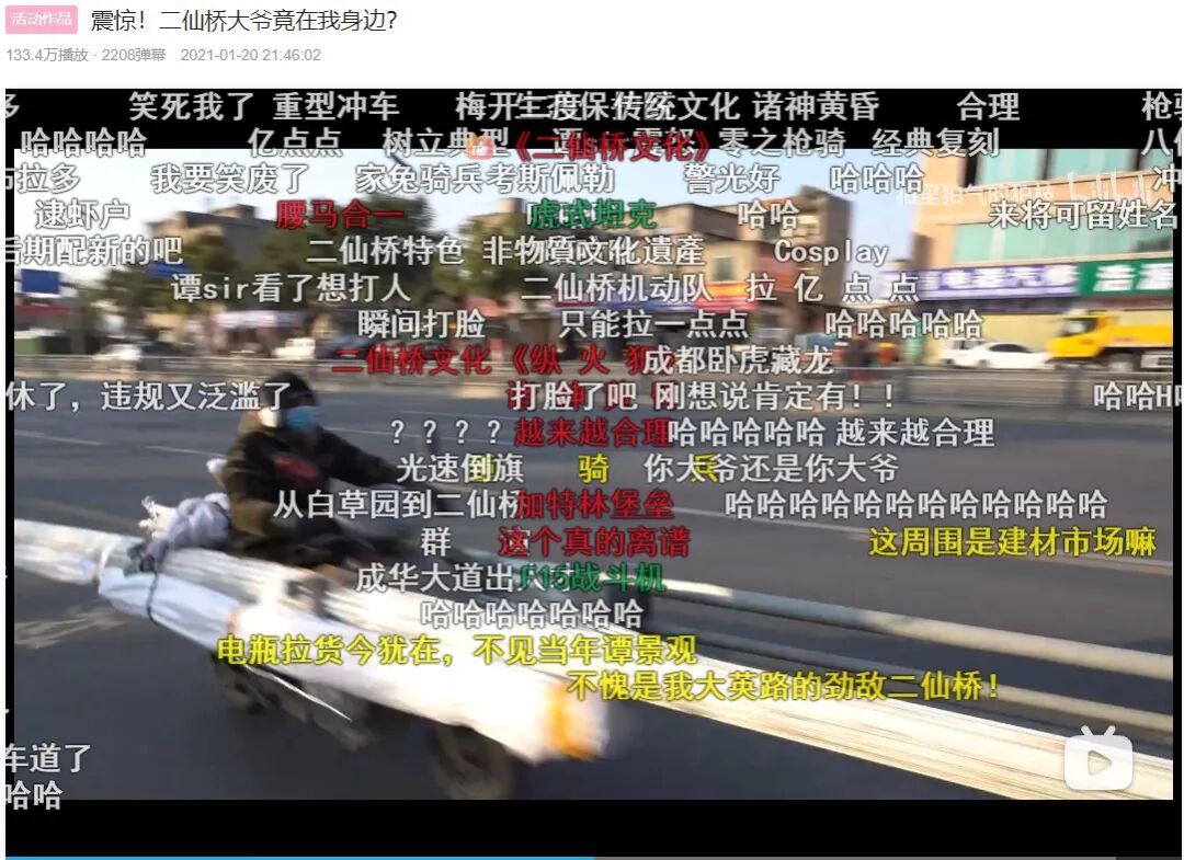 有人故地重游,圣地巡回打卡。本以为多年之后,二仙桥不至于再出现类似情况,但没想到竟然接二连三地出现各种版本的“二仙桥大爷”,弹幕已经从“离谱”改成了“合理”。