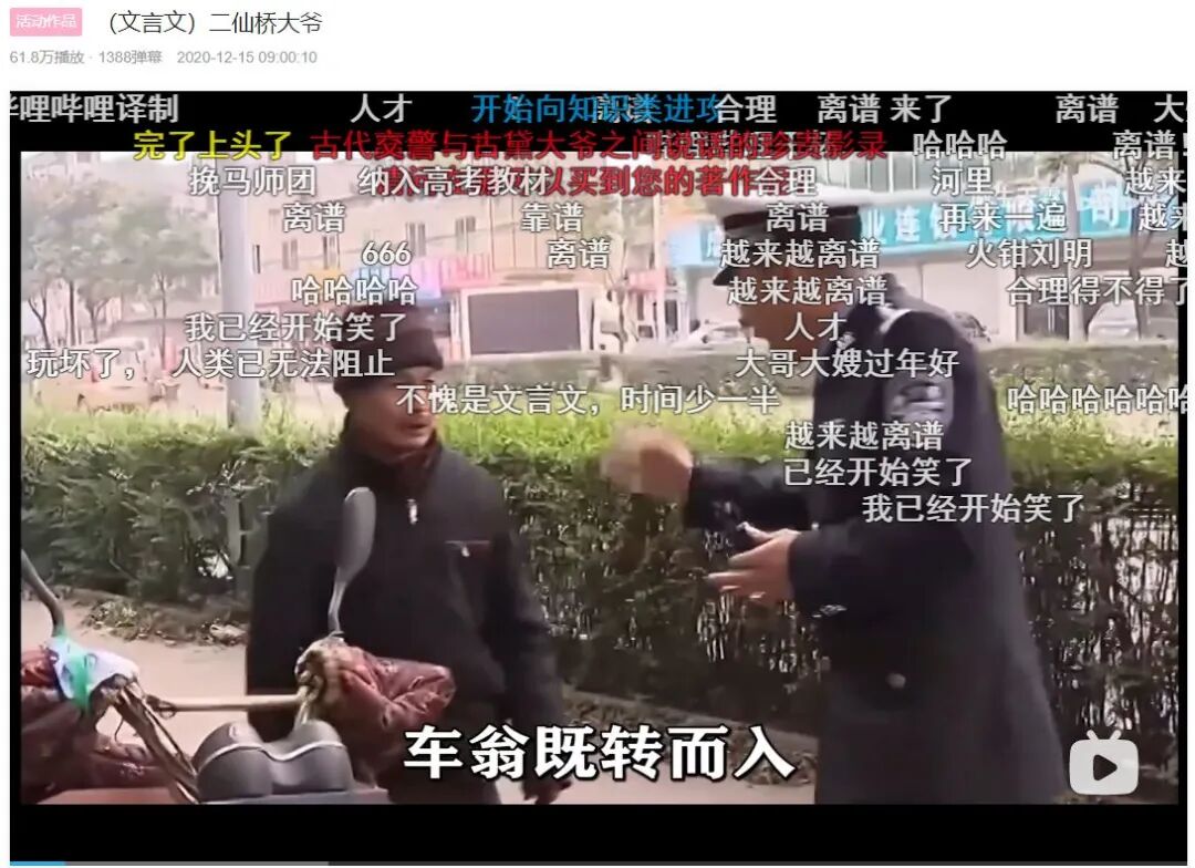 在这股快速兴起的热潮中,“二仙桥大爷”变得越来越离谱。有人专门进行了文言文创作,不仅广受欢迎,评论区还兴起了文言文回复的热潮。