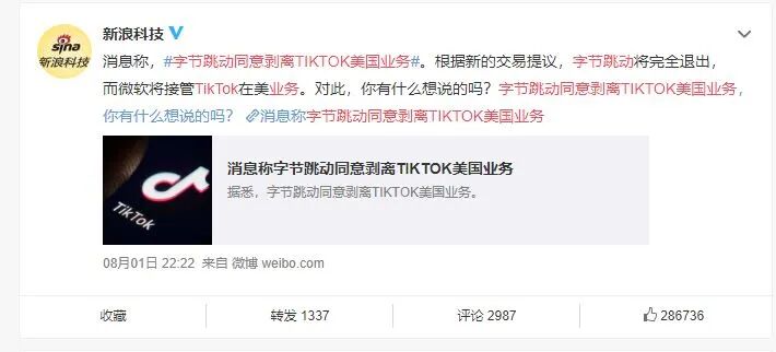 8月1日晚间,一则“字节跳动同意剥离TikTok美国业务”的消息,迅速引起了网络热议。