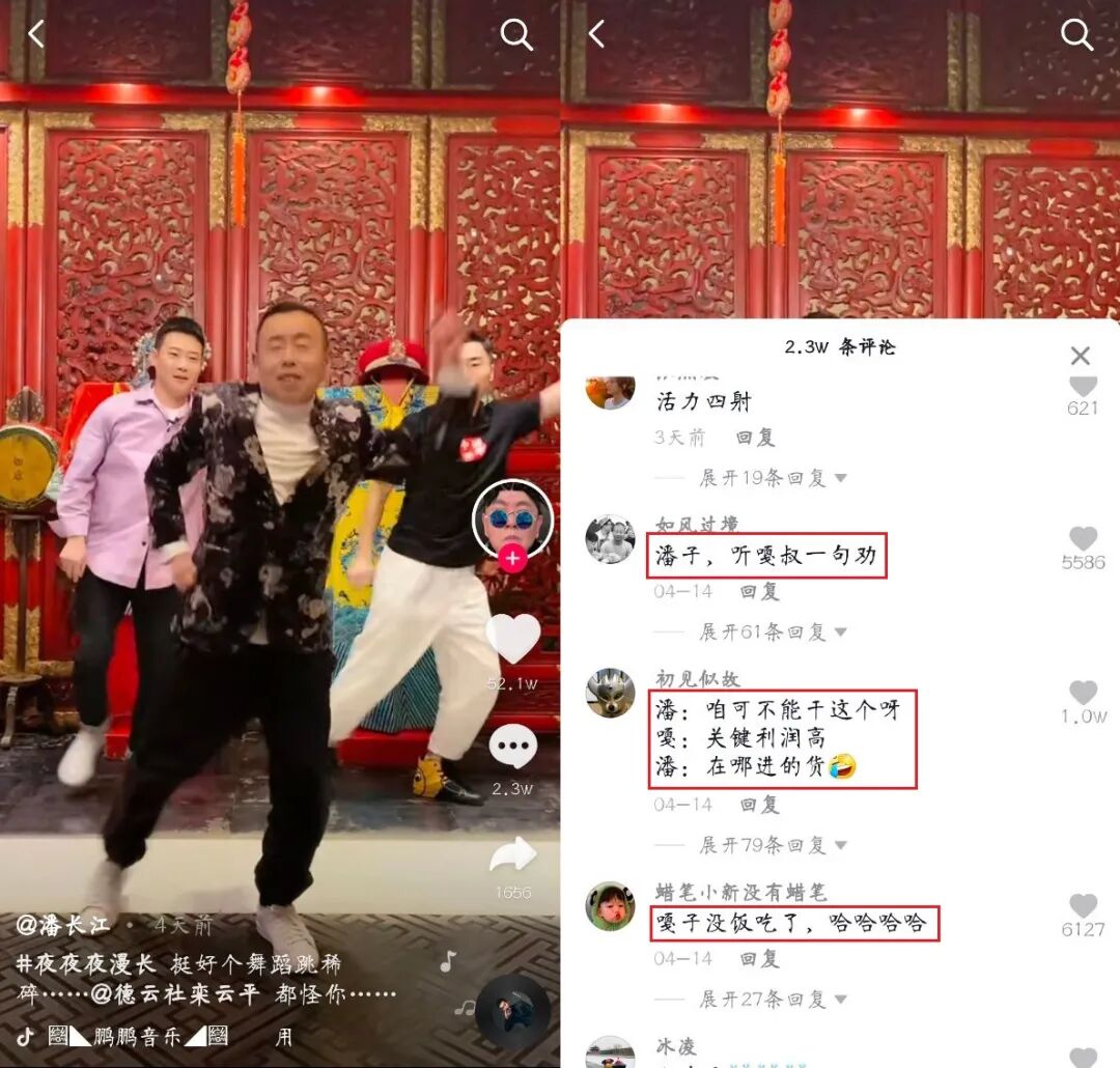 “潘子,听嘎叔一句劝。”在潘长江最新发布的抖音视频里,网友们留下了这句“不合时宜”的调侃。配合视频中热舞的潘长江,场面显得十分尴尬。这条短视频发布于4月14日,潘长江还未对此进行回应。