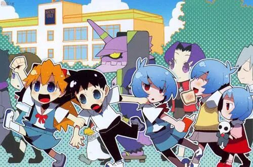 又名《Q版校园EVA》,游戏同名称一样明显,特点就是人物都是Q版。值得一提的是这个“Q版”内容除了游戏,还出过一共24话的动画内容,以3D模型制作的搞笑动画,也是单纯的粉丝向内容。游戏内容主要也是以原作中的各位主角,在普通校园里的温馨幽默小故事为卖点,玩法也简单直接,配合NDS的分屏特性,人物对话页面和操作页面分开显示。虽然是轻松的小品向粉丝游戏,但是一个深奥晦涩的机甲动画,改成了这样一个风格相差巨大的游戏,确实叫人有点迷惑,但这并不是“EVA”游戏第一次朝着奇怪的方向改编。