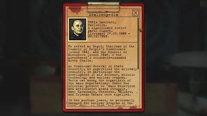 而之所以说这款游戏不光是“沙雕”,是因为在游戏中,专门设有一个“词条科普”界面,对前苏联的大量重要人物与专有名词,进行了非常详尽的科普,对玩家了解前苏联的背景故事,还真起到了一定作用,加上故事中文本纯正的“苏联味儿”,英国游戏媒体“PCGamer”甚至对本作给出了“比想象中要好”的评价。