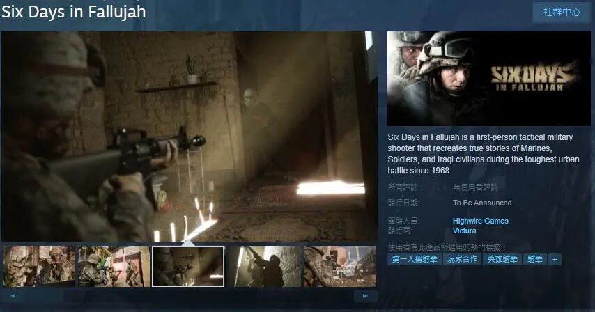 就在前不久,一款叫做《费卢杰六日》的第一人称射击游戏被搬上Steam平台,引起了不少政治团体的担忧。就像标题所写的那样,这是一款以“伊拉克战争”为主题,从美军视角描写“费卢杰战役”的游戏,而考虑到那场战役的特殊与敏感性,游戏项目一度被搁置,直到近年来,项目决定重组,这才又引起社会各界的关注。