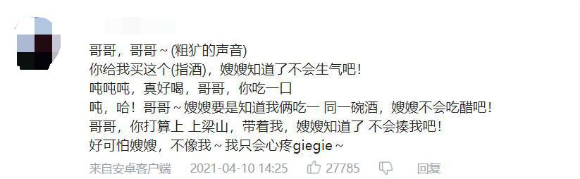 比如至今仍旧占据热评第一的《“心疼giegie”之水泊梁山版》,单就那一声“洒家”,味道之纯正,顿时就冲昏了不少看官们的脑门。