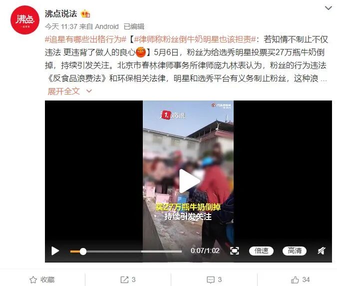 不仅如此,这一倾倒牛奶的行为,显然已经涉嫌违反了刚刚颁布的《反食品浪费法》。更有律师指出,明星和选秀平台应该为此事担责。