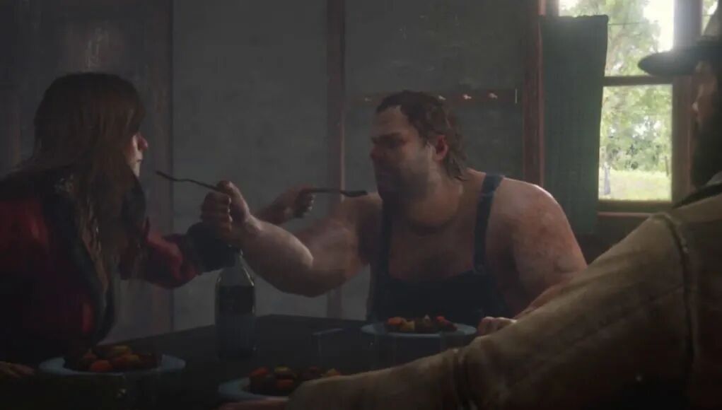 当玩家追随着失踪工人的足迹,走入食人族的屋子中时,家中的男女主人会热情地邀请你留下,和他们一起享用晚餐,但家中的儿子和女儿,却显得言行“怪异”,似乎和常人不同,在玩家最终发现他们的秘密后,他们便会立刻露出另一幅痴傻,却又残忍的面容……虽然那样做的结果,多半都是惨死在“丧心病狂”的玩家手中。