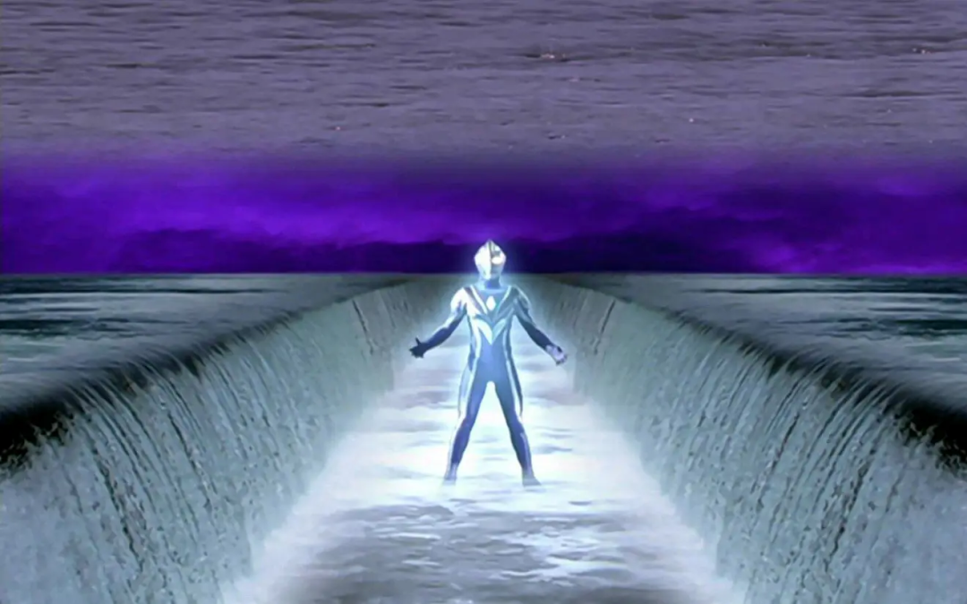 同样是上面提到的TV41集,藤宫博也再次被地球认可,重获了阿古茹的力量。这也诞生了《盖亚奥特曼》中的又一名场面——藤宫博也被海洋之光所笼罩,随着光芒闪过,大海被一分为二,随后,深蓝色的光之巨人缓缓站起。