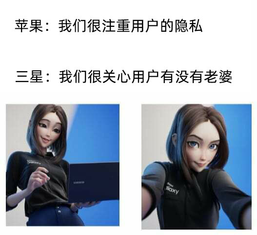 即使苹果用户宣称自己有着移动端最强的隐私保护,但奈何架不住人家三星给用户发老婆啊。