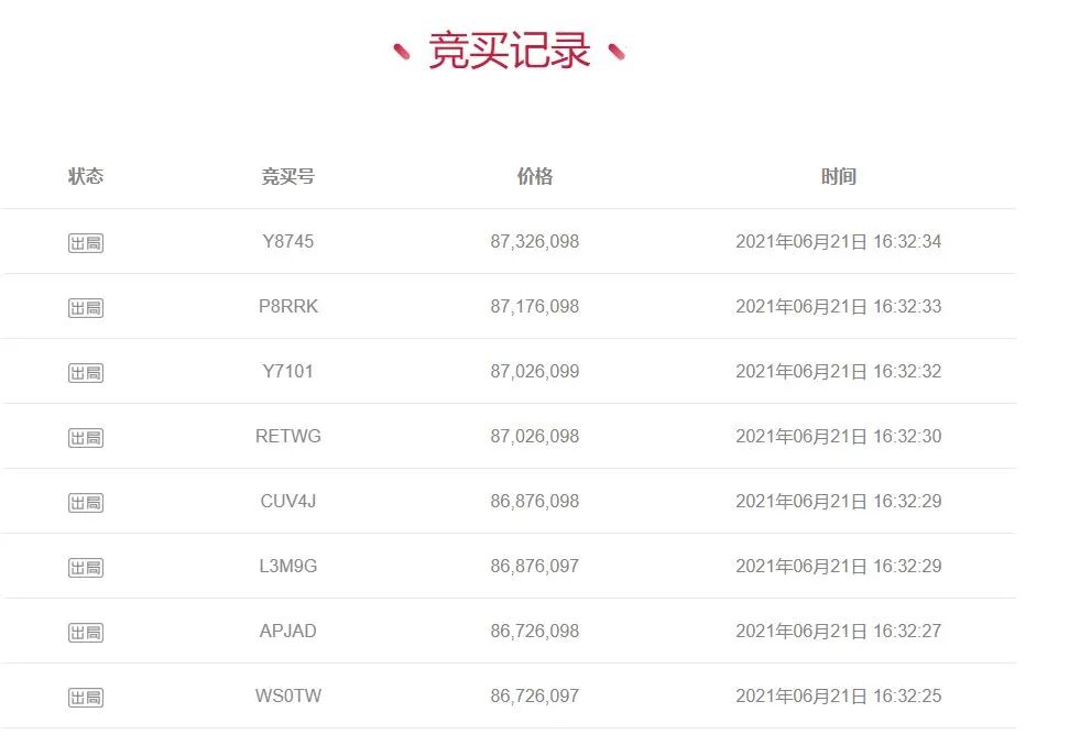 而目前出价最高的Y8745,在拍卖中止前已经参与了多轮竞拍,虽然他成为了中止拍卖时出价最高的倒霉蛋,但他并不算无辜。
