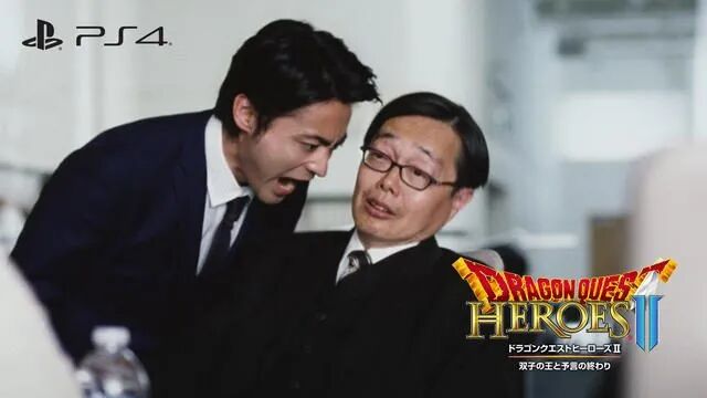 2016年,《勇者斗恶龙:英雄2》发售在即,SE联合索尼,又找到“前任勇者”山田孝之,想让他在广告中,展现一下自己沉淀已久的“DQ爱”。最后的成品广告分为两则,一边是上班族的山田孝之加薪升职,伴随着各种游戏效果音,另一则是讲述了一次使用“咒语”的公司会议。