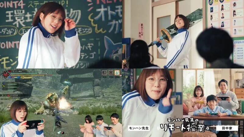 本田翼为《怪物猎人:崛起》拍摄的电视广告“怪猎老师”