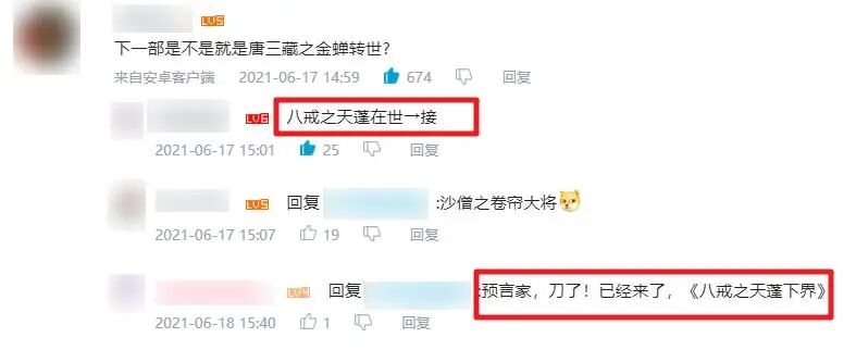 在《济公之降龙降世》B站宣传片的评论区,有位用户对这些国产3D动画电影的命名有些不满,吐槽未来是否会出现“八戒之天蓬在世”。