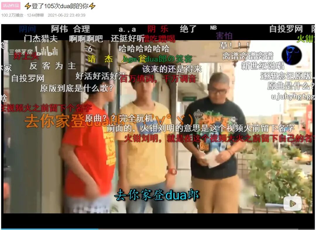 UP主“三顧茅房”发布的《登了105次dua郎的你》,则结合了时下热点,对流行一时的歌曲《热爱105度的你》进行鬼畜,旧梗装新酒,居然也取得了很好的节目效果。如今,这种新旧结合的鬼畜方式,已经见怪不怪了。