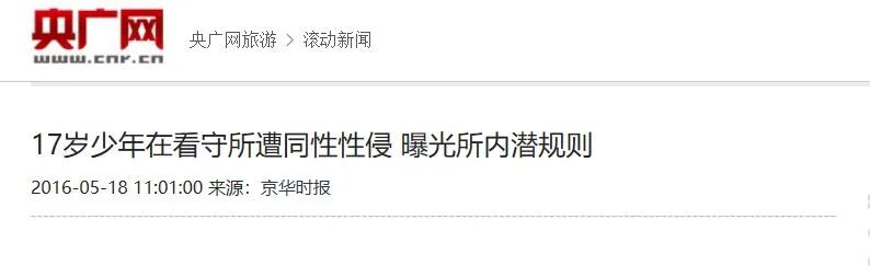 2016年,京华时报报道,17岁少年在看守所多次遭到被羁押的同性性侵,而这种现象早已存在。