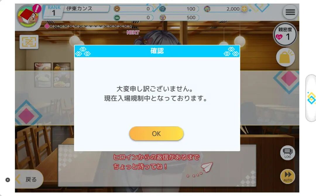 在简单的教程过后,我从地图上选择了一名角色并顺利进入第一章剧情,但当我对她剧情中的第一个疑问做出回答时,得到的却是一张写着“入场限制”的通知。