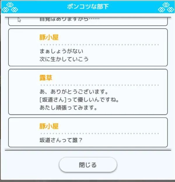 更糟糕的是,在这之后,又有玩家在发出了一张更加离谱的聊天记录,从记录上看,一名角色名叫做“豚小屋”的玩家,在和一名叫做“露草”的角色交流时,对方的口中突然冒出了一个叫做“坂道”的陌生名字,让人不免在脑中联想到一个诡异的NTR场景,这也更加坐实了女孩子背后的“真人”,正在同时和多人进行交流的猜想。不管怎么说,弄错玩家姓名这事,都不太像是如此“智能”的AI会做出的事情。